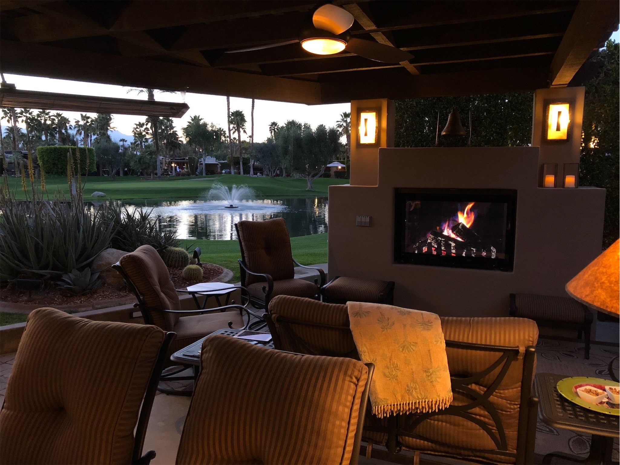 Many owners build enclosed pergolas with electric heaters when the nights get a bit cool. Our friends Dennis and Kathy even had a digital fire video playing one evening.