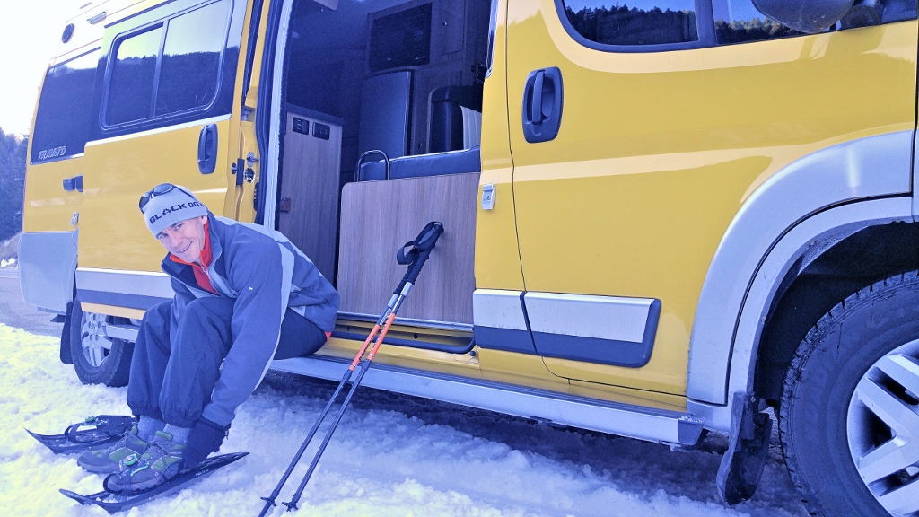 Yet still, we love winter camping together. But don't think we're sitting inside the RV all day twiddling our thumbs when the weather gets cold, far from it. We'd go nuts (actually James would drive me nuts). Instead, our winter camping trips tend to revolve around outdoor activities like skiing, snowshoeing, hiking, bickering (wait, I meant biking), etc.