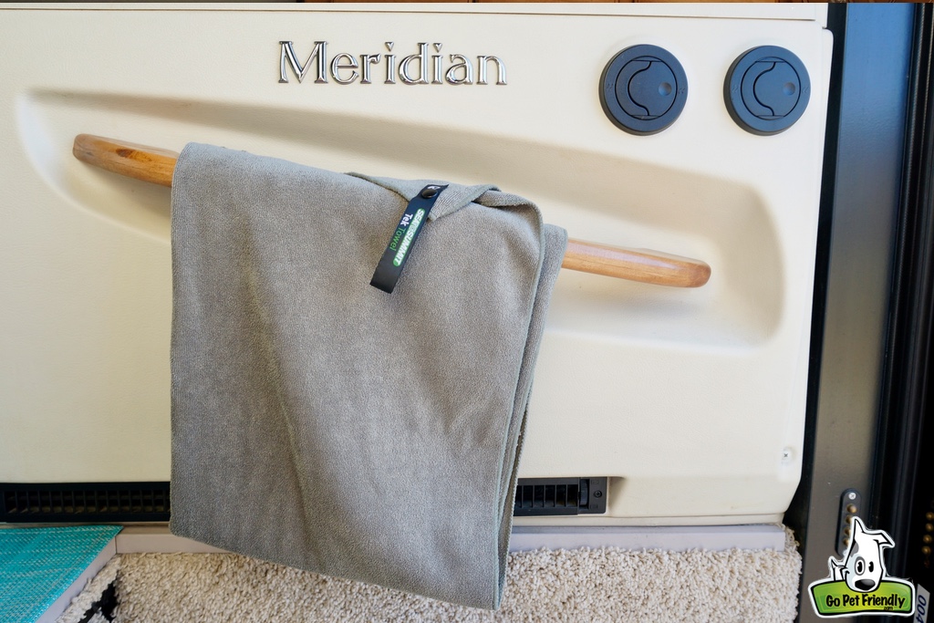 The final requirement is a quick-drying, super absorbent towel designed for campers and backpackers. These towels make a huge difference when you're wiping dogs and soaking up messes several times a day. We keep ours hanging right beside the door so it's always easy to reach.