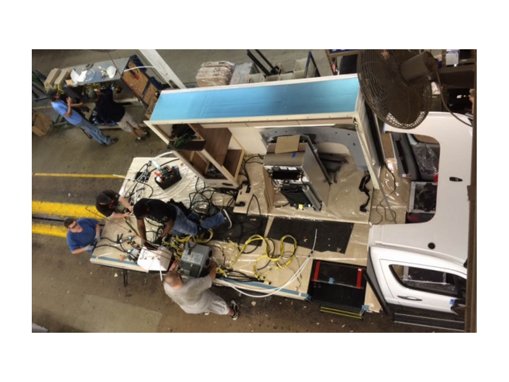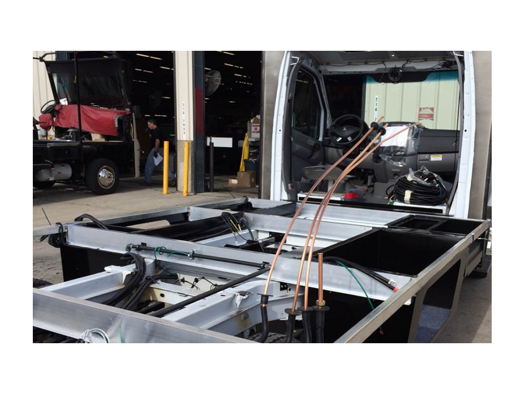 Before it goes into the factory, the plumbing and wiring harnesses are installed.