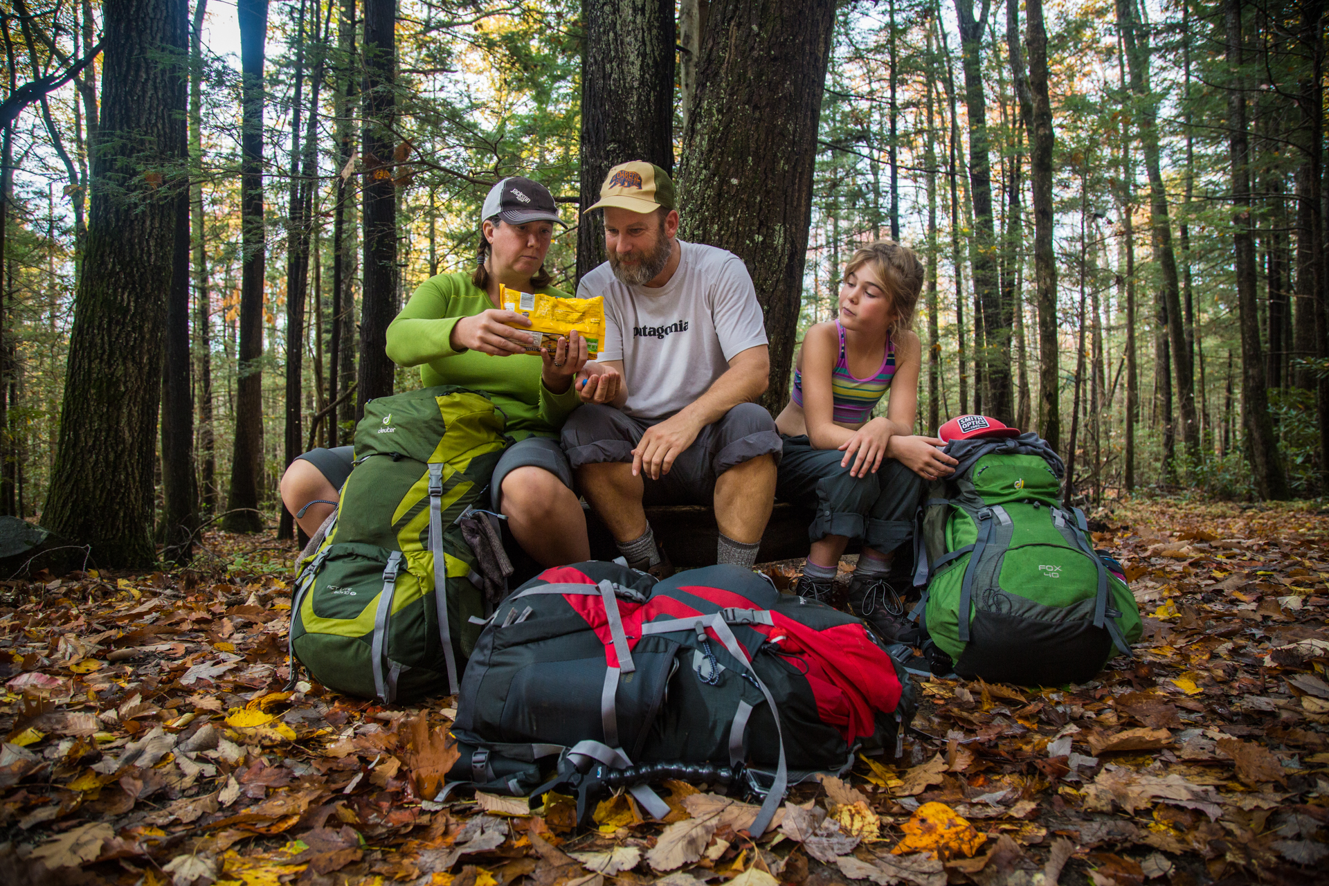 The rainfall accompanied us all day on our hike along the AT, but aside from making the roots lurking under the calf deep river of leaves that covered the trail extremely slippery, it actually was quite pleasant. While hiking in the rain can be fun, setting up a tent camp and cooking dinner in a deluge certainly is not. Miraculously, as we stepped into camp, the rain abated giving us just enough time to assemble our tent and secure our packs on the cable suspended high above in the trees - preventative measures to avoid a close encounter with one of the many black bears found in the park. Unfortunately, just as we set up our kitchen on a nearby rock, the brief reprieve from the rain ended, sending us scurrying to the shelter of our tent. We cooked dinner hunkered under the small vestibule of our cramped tent, ate and played a few hands of cards before calling it a night.