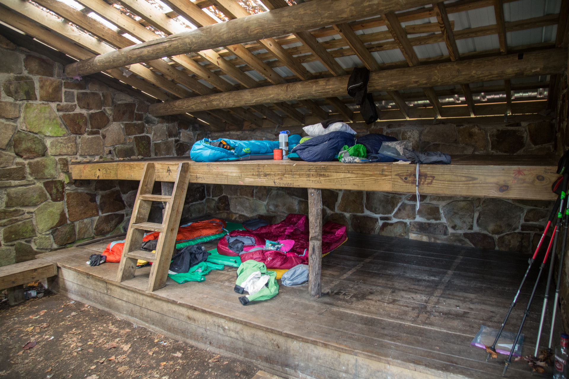 The interior of the shelter is spacious enough to hold more than a dozen backpackers. Fortunately, we had the entire bottom bunk to ourselves.
