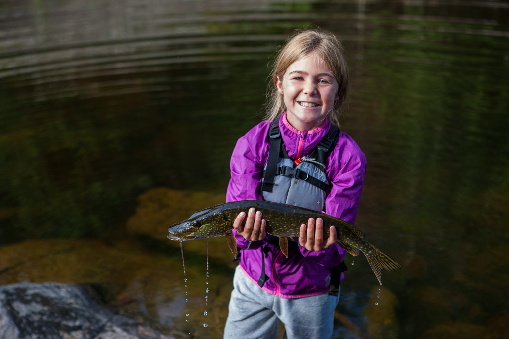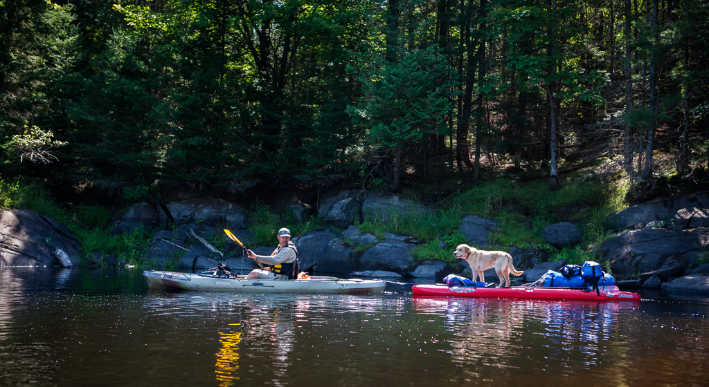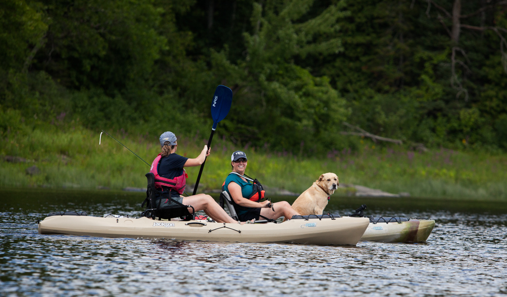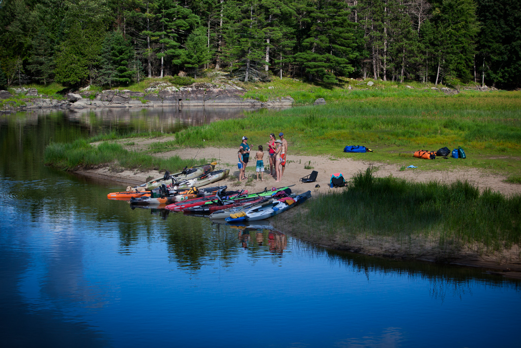 A few days later we met up with a local family of four, the McBeaths, for an entirely different Ottawa experience. We were surprised when they instructed us to ditch the whitewater boats and pack up our fishing kayaks for an overnight river adventure. We loaded up the sit on top boats with tents and sleeping bags, kids and dog and a small arsenal of fishing rods and set out again into the green water; this time focusing on the calm water between the rapids. At the onset of our journey and before we even had all the boats in the water, the youngest McBeath, Sam (age 11), shouts "Fish on!" and proceeds to land a 30 inch pike. This immediately increased our excitement and anticipation for what was to come over the next two days.