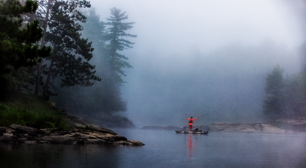 The next morning, I woke just before dawn with a plan to slip out before the others for the best fishing of the morning. I stepped out of the tent into a fog so thick that the lake, only twenty feet away, was completely concealed from view. But, before I even made it down to the water, I heard Peter and James racing to catch up with me - so much for being the early bird. We quietly slid the three kayaks into the glassy water and set out into the dense fog. My first cast was rewarded with a 20" pike and on subsequent casts landed a dozen more fish. Within what seemed mere minutes, we could hear the kids voices echoing across the lake as they paddled out to join us. Before long, and with rumbling stomachs, we returned to the beach for breakfast and to breakdown our camp. We made quick work of loading the boats and were en route back to the portage over the small strip of land that sheltered our secret lake by mid morning.