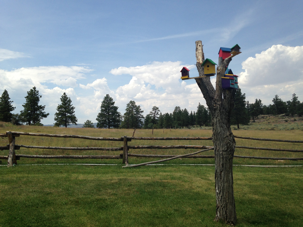 About four miles south of the dam, we reached Flaming Gorge Resort, which offers it all--a fly and tackle shop, a raft and shuttle, a general store... and the Pine Forest RV Park on the premises. Here, our backyard consisted of a meadow backed by grand vistas--and a birdhouse tree that approximated the colors of the surroundings. Serenity, indeed.