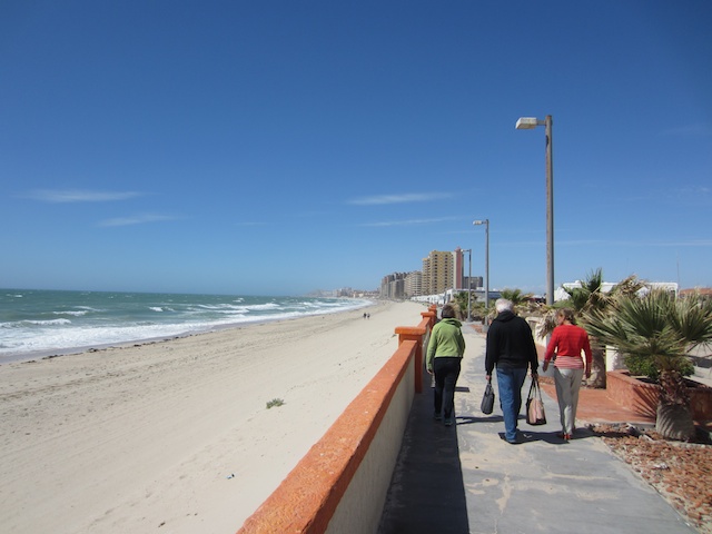 On our second day, two waves of town tours were arranged. Jerry and Sue led off in their car, followed by two other cars (we shared a ride with another couple). Everyone had little FRS walkie-talkies and we followed Jerry and Sue as they drove through Puerto Penasco using the walkie-talkies to point out shops, restaurants, the grocery store, medical clinic, etc. Even though we have a GPS in our car, the driving tour was enormously helpful when it was our turn to solo. It was part tour part cultural orientation. They pointed out some of the highly variable stop signs to help us avoid having an unplanned meeting with the local policia. They showed us which stores had good pricing and might even offer Winnebago travelers a discount.
