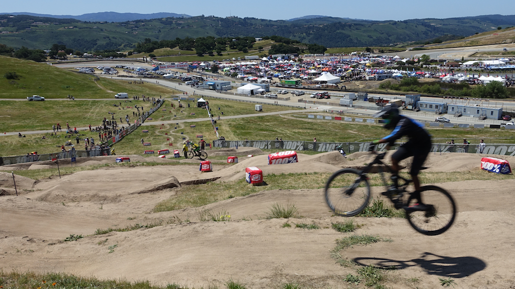 70,000 mountain bikers roll into, around and above the Laguna Seca racetrack at the Sea Otter Classic every spring outside of Monterey, California.