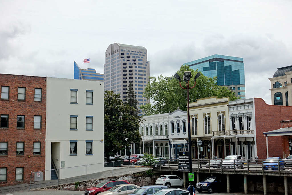 It's about a twenty-minute drive from the RV park into downtown Sacramento. Our plan was simple - we would walk through Old Sacramento and then head south for a few long blocks to the capitol, have lunch and then return back to Old Sac for a tour of the California State Railroad Museum.