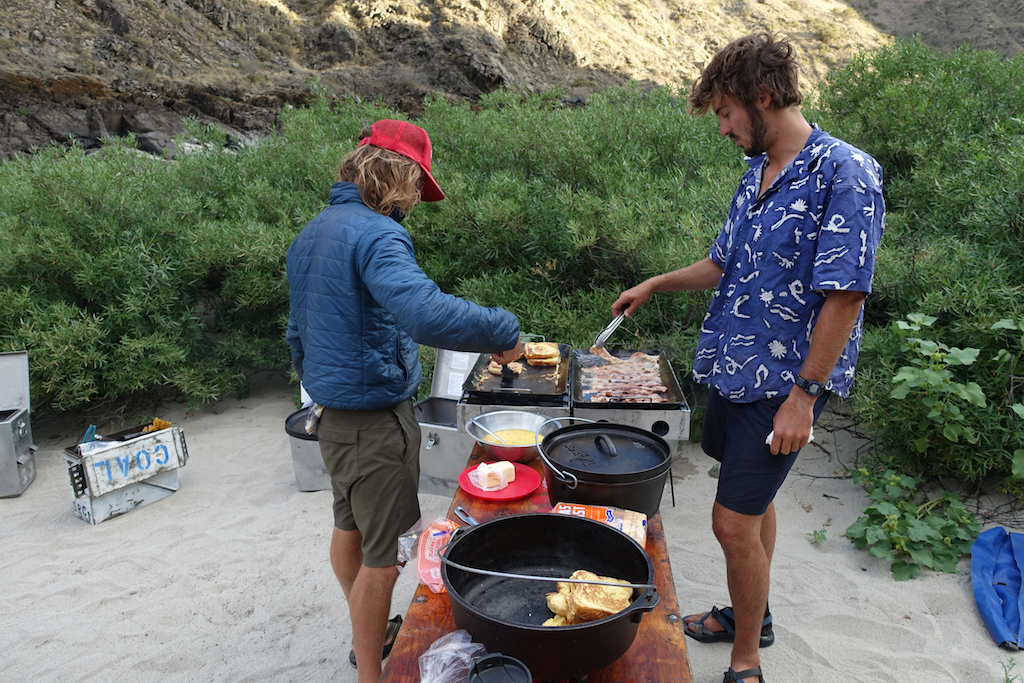 By the end of the trip I'm surprised our girths didn't sink the rafts. One breakfast featured a rotation of two types of french toast (multiple syrup choices). Another offered blueberry pancakes, or ones with pecans. Alongside were plates of bacon, sausages, and plenty of hot, hot coffee. On our second morning it was a build to order omelette bar where a table full of ingredients was laid out for us to choose, put on our plate, and then walk over to Jonah who deftly rolled them into a perfect omelette.