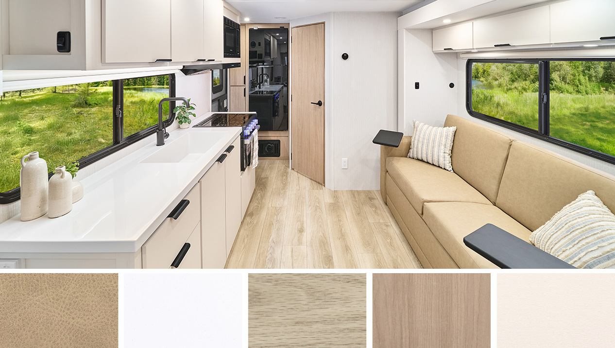 Small footprint, big impression. The Thrive™ 18FBS brings elevated camping to a compact floorplan, pairing must-have essentials with standout design. Inside, a frameless panoramic front window, Olympic queen-size bed with built-in storage, custom jack-knife sofa and premium touches like fiberglass countertops with molded sinks, and soft-close drawers bring modern style and functionality to life on the road. This travel trailer is the perfect match for couples or solo travelers who want to embrace the outdoors and live well doing it.
